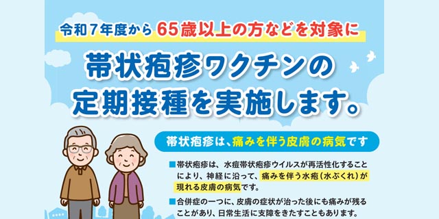 当院では帯状疱疹ワクチンの定期接種を行っております